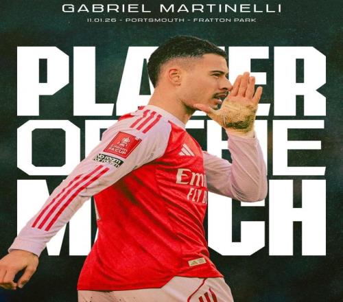 足总杯第三轮,阿森纳客场4-1击败朴茨茅斯,马丁内利此役上演枪手生涯首次帽子戏法,赛后当选阿森纳队内最佳球员。
