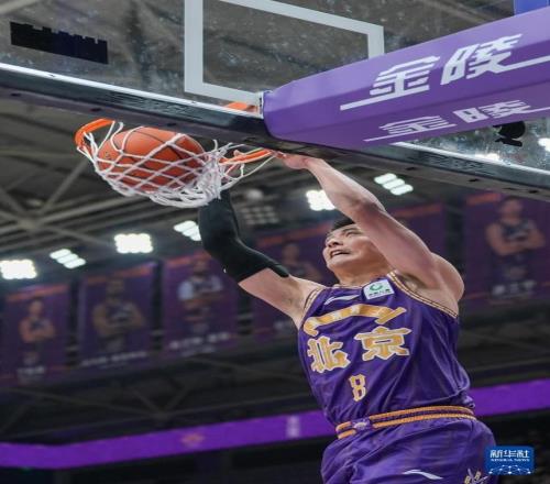 1月15日,北京控股队球员朱松玮在比赛中扣篮。新华社记者 谢晗 摄