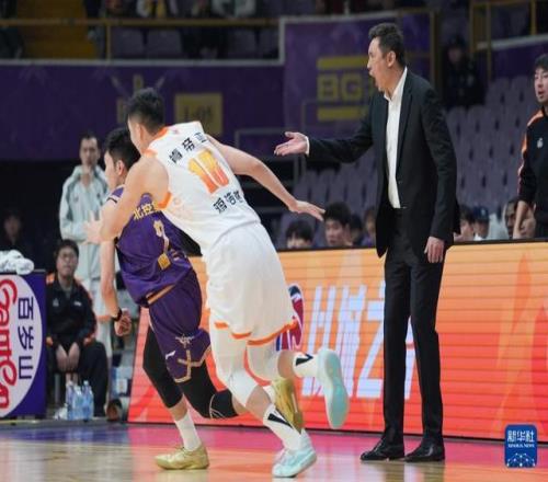 1月15日,北京控股队主教练张庆鹏在比赛中。新华社记者 谢晗 摄